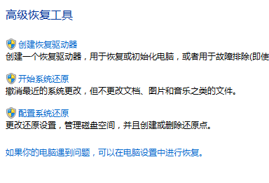 1.在控制面板中打开“恢复”(大图标查看方式下)。